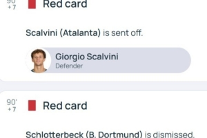 施洛特贝克和斯卡尔维尼场下抗议染红 后者下轮战枪手/拜仁将停赛